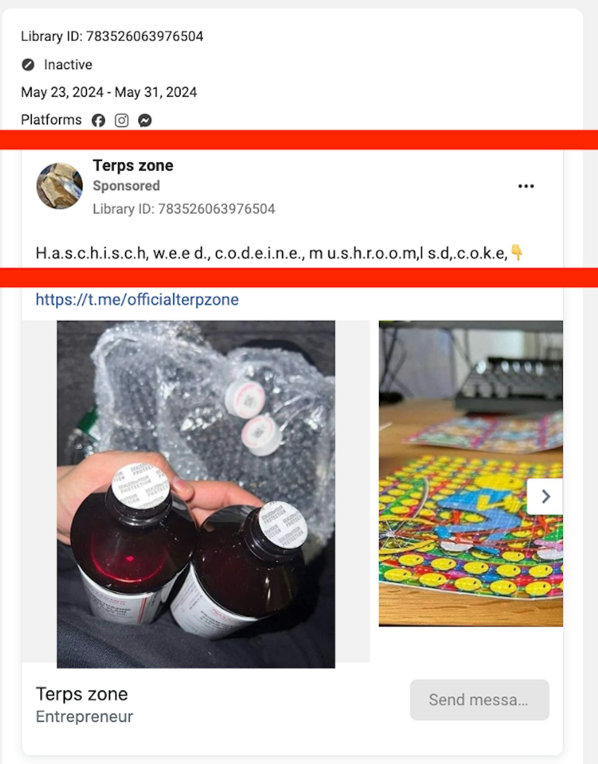 TTP’s investigation highlights another facet of Meta’s drug problem: advertising.