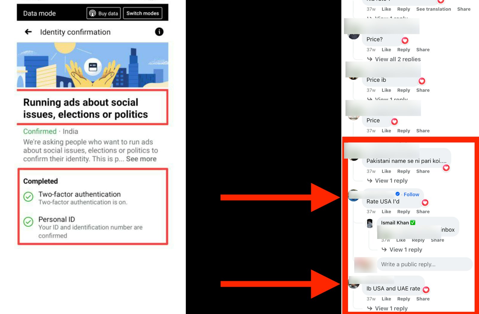 A user in another group called “Facebook Ads And Google Ads Expert,” with more than 102,000 members, posted in November 2023 that they needed a “fb account that is eligible to run social, election and political ads in India with a Good spend limit to add prepaid funds.” Multiple members of the group replied with offers to help, including one who gave his location as Vietnam—an indication of the borderless nature of this black market.