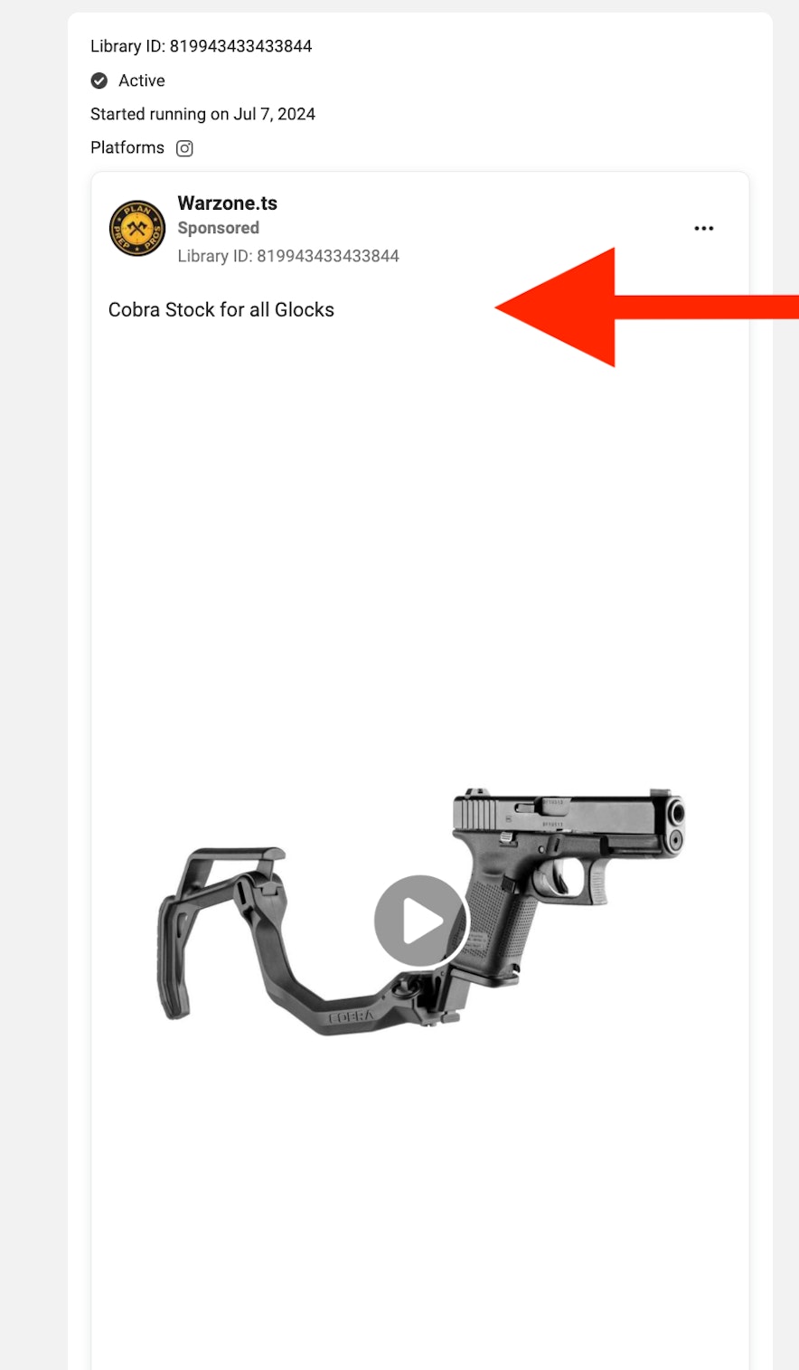 Two Instagram ads from July 2024 showed a Glock pistol equipped with a collapsible stock.