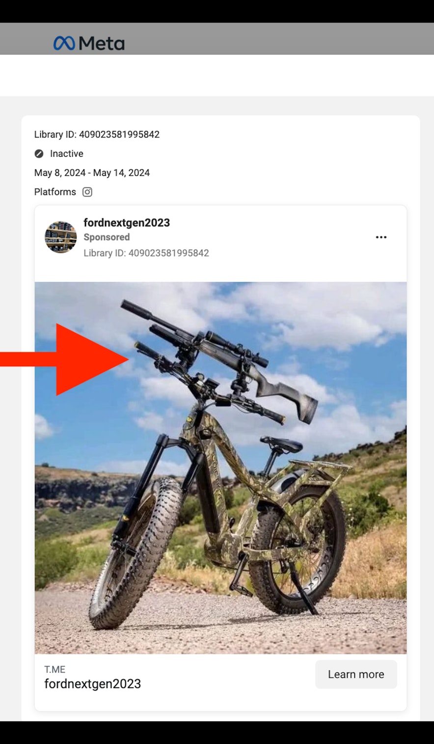 This Instagram ad from May 2024 showed a mountain bike with a rifle mounted on the handlebars.