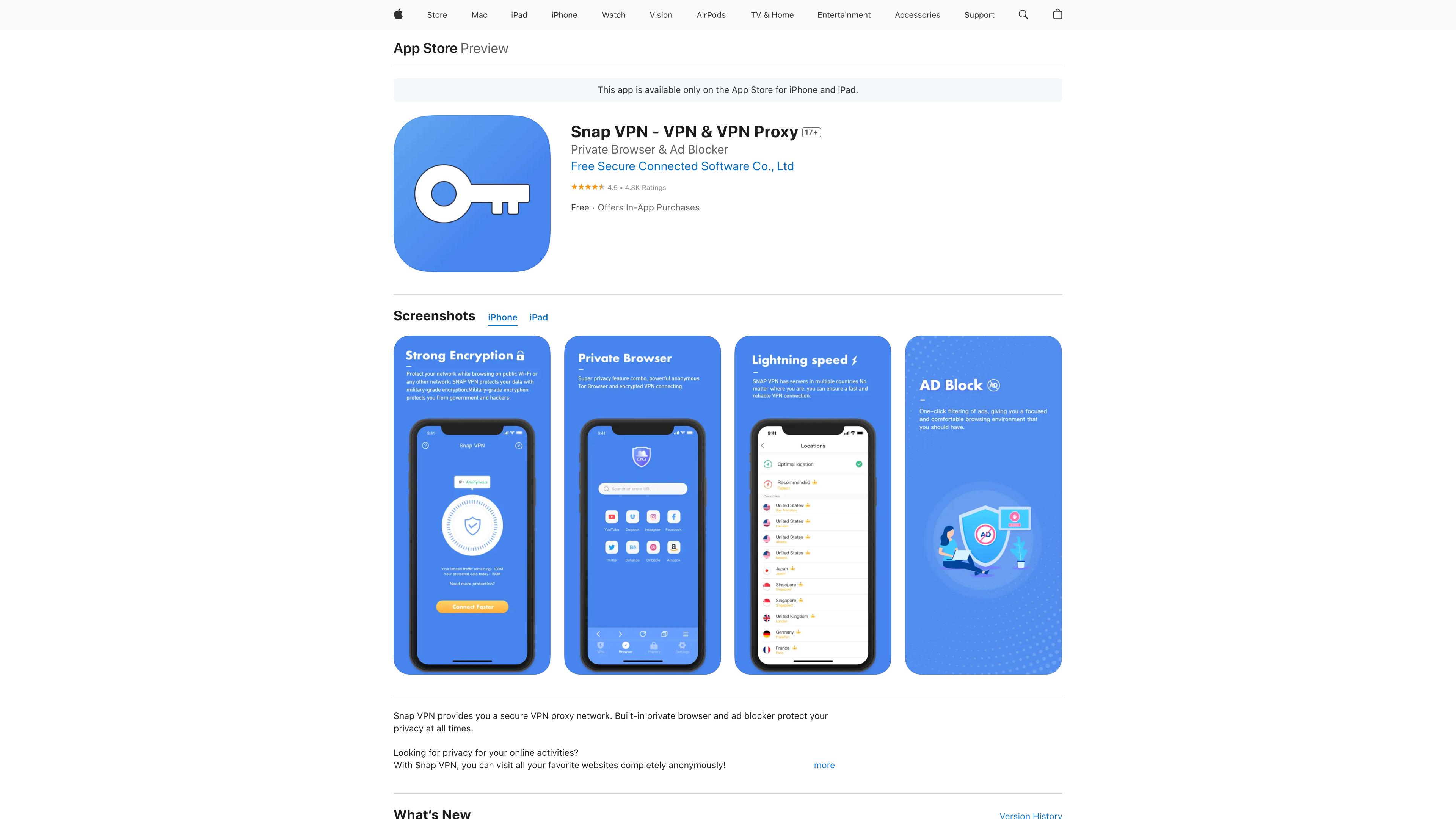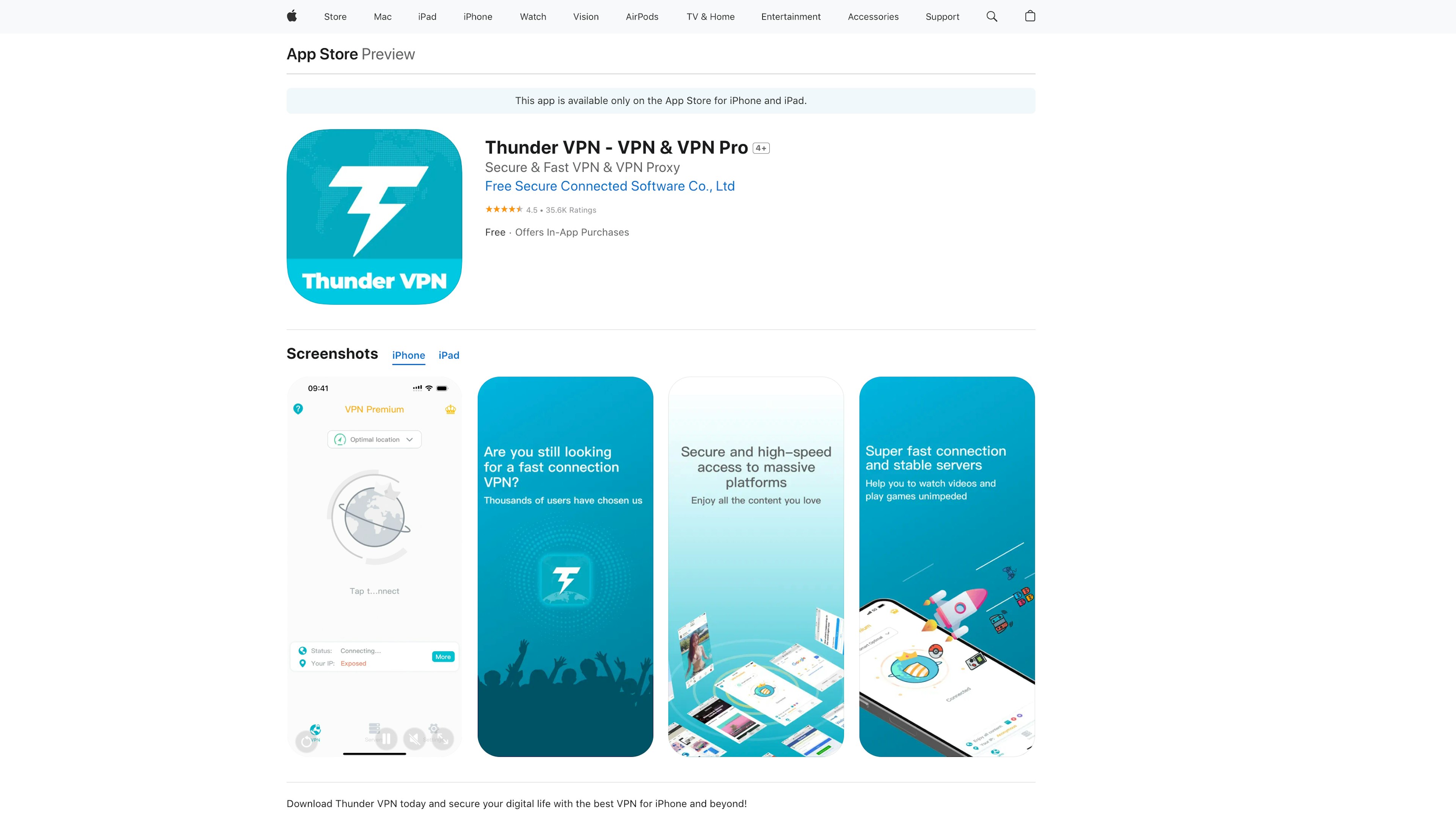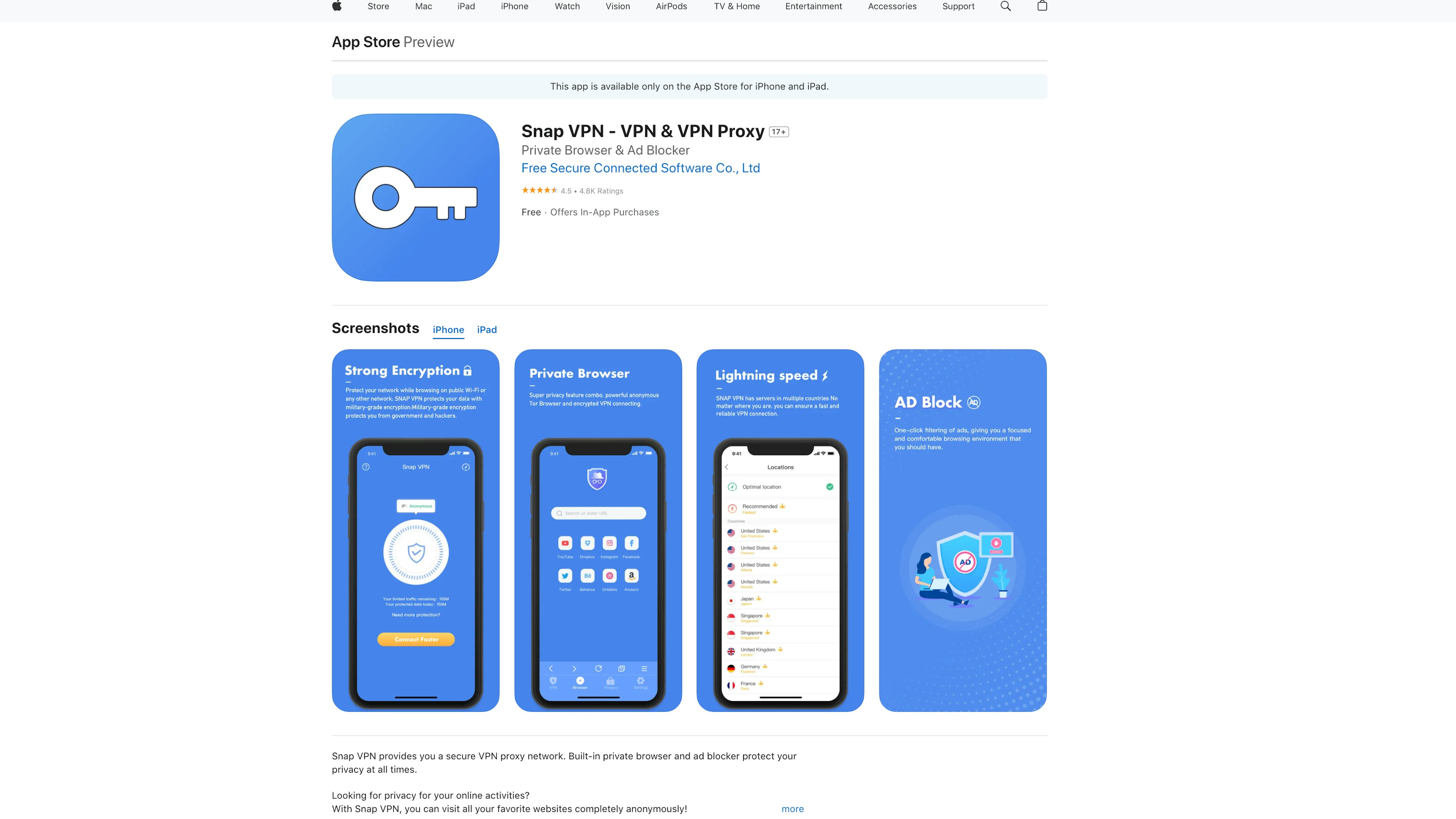 Its companies developed two other VPNs in the top 100 free downloaded list last year—VPN Proxy Master (ranked 12th) and Thunder VPN (ranked 60th), as well as an unranked app, Snap VPN.