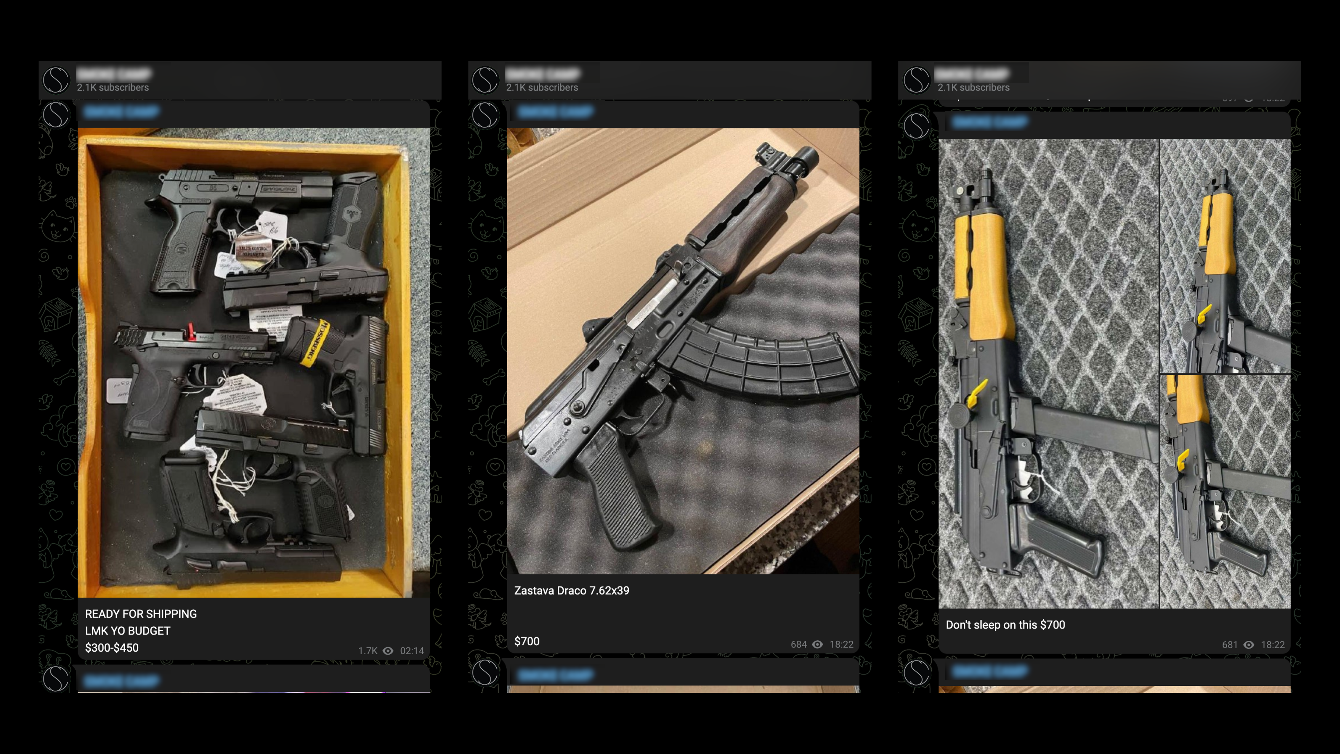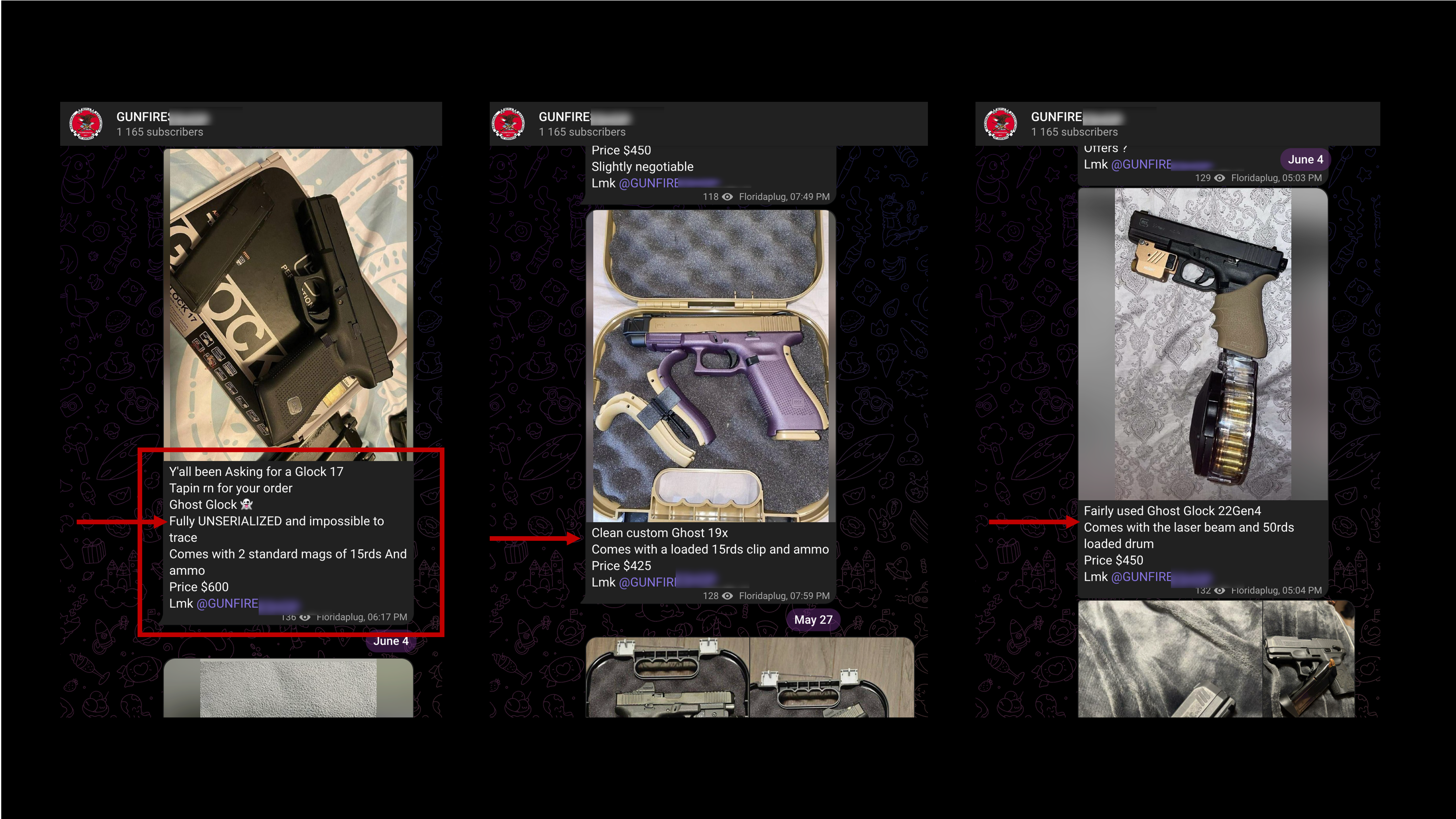 - The ads offered firearms including Glock pistols, assault weapons, or untraceable "ghost guns."