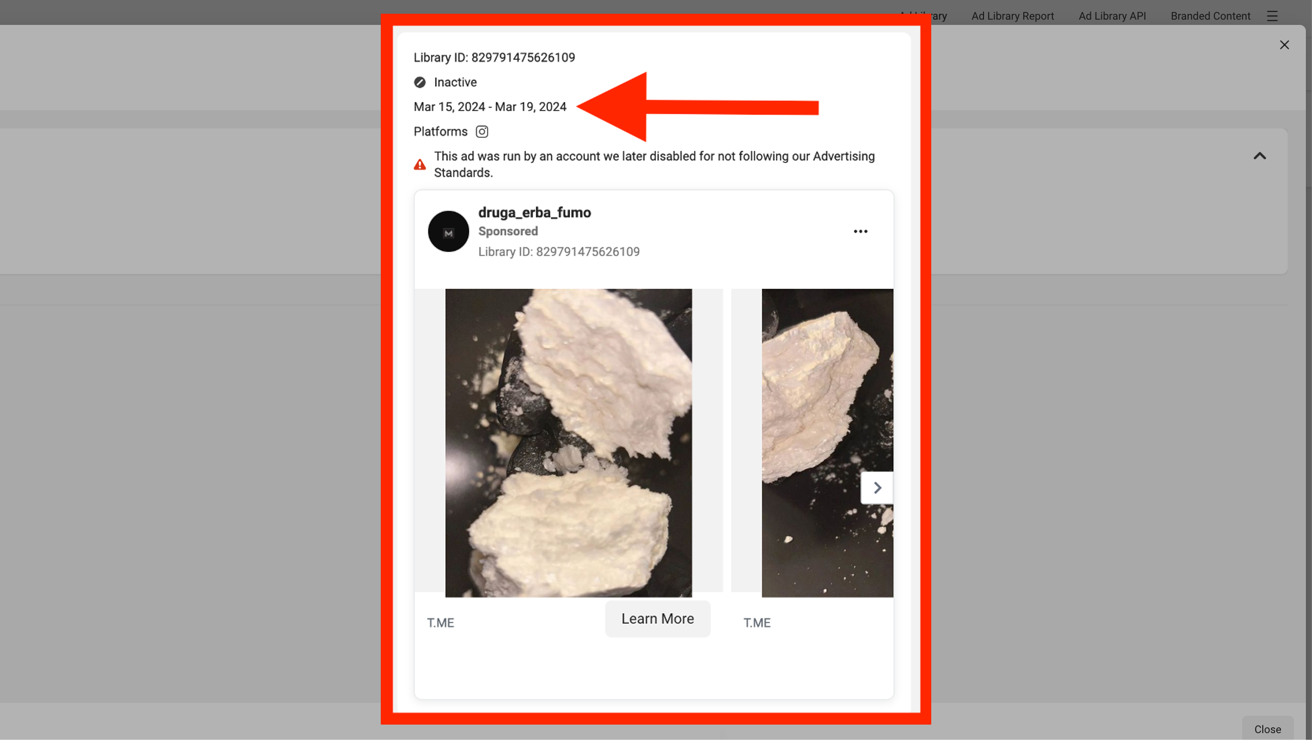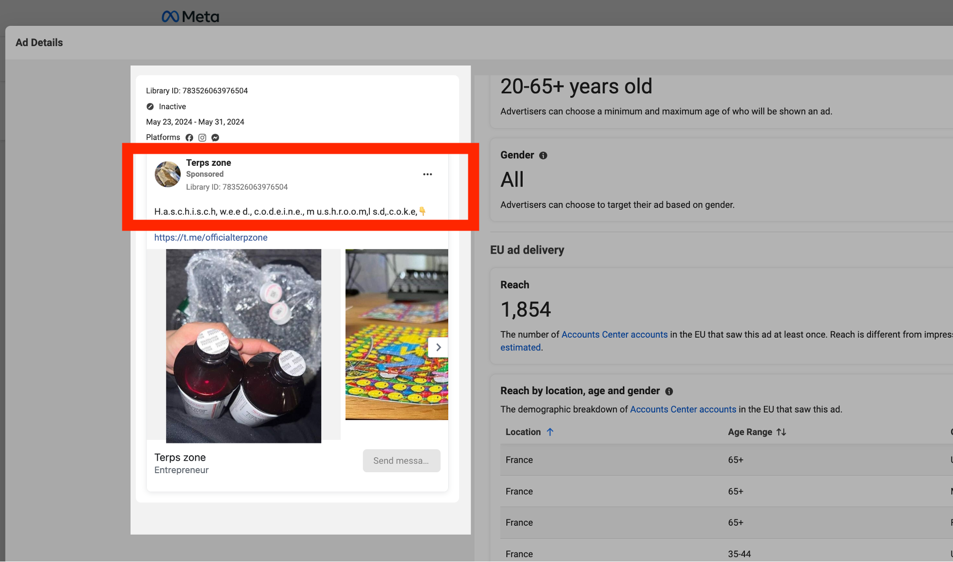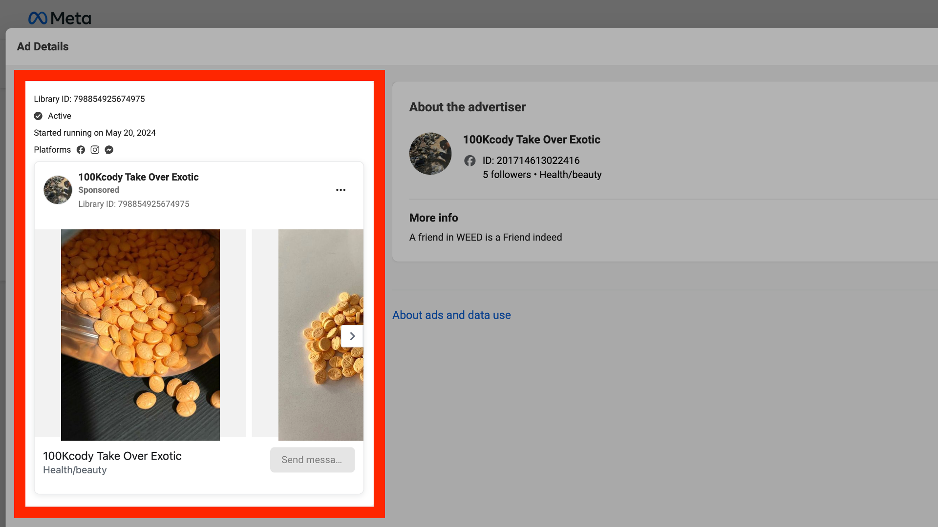TTP’s investigation highlights another facet of Meta’s drug problem: advertising.