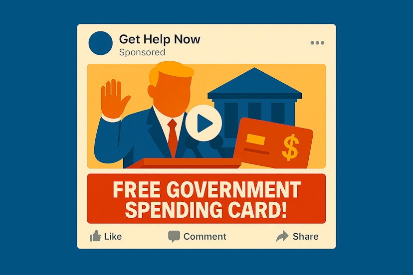 Scammers are spending heavily on Facebook ads that use deepfake videos of President Trump, Elon Musk, and other political figures to hawk fake government benefits.